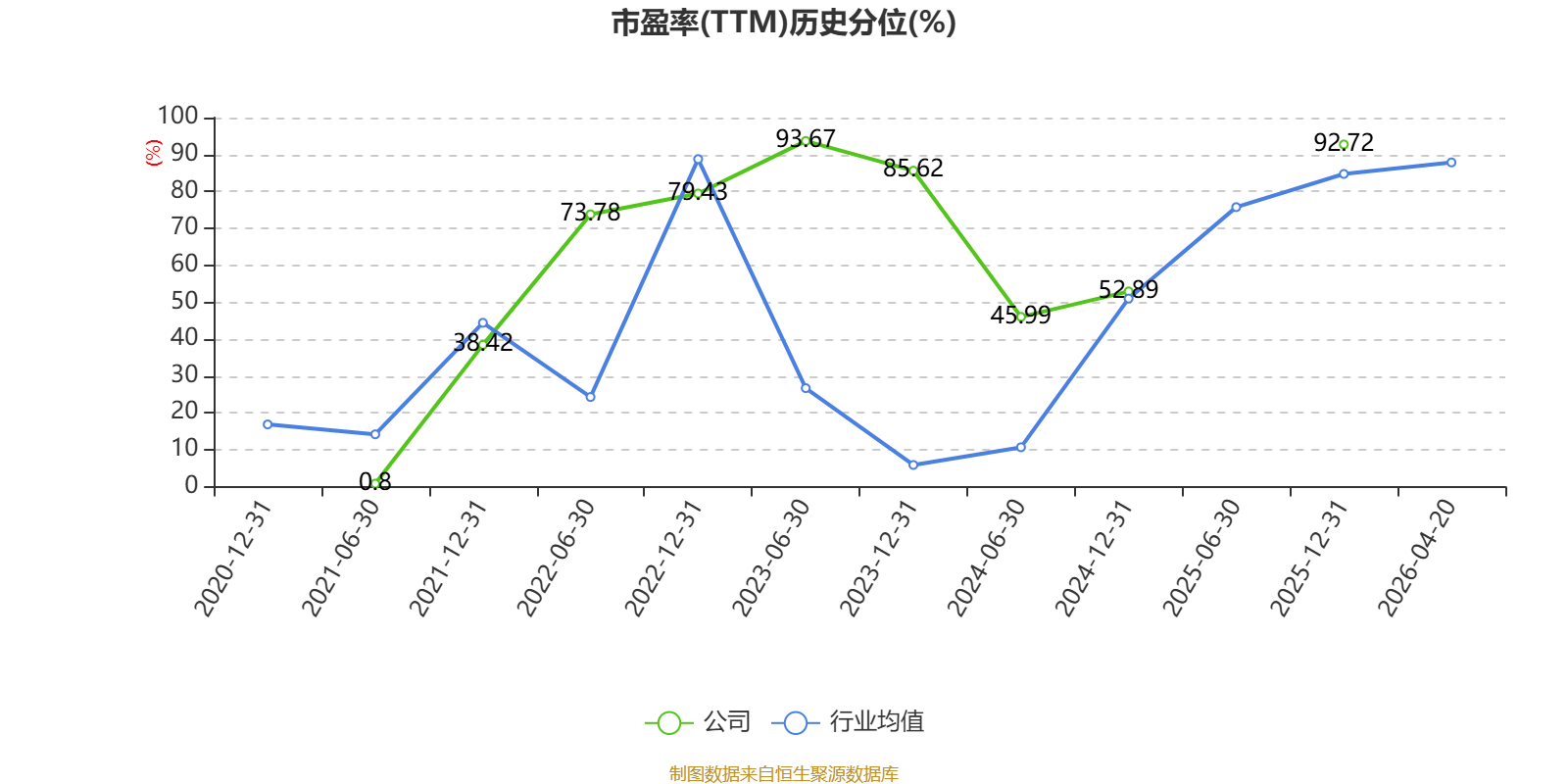 市盈率、市净率为负时,不显示当期分位数,会导致折线图中断。