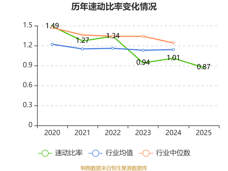 2025年,公司流动比率为1.09,速动比率为0.87。