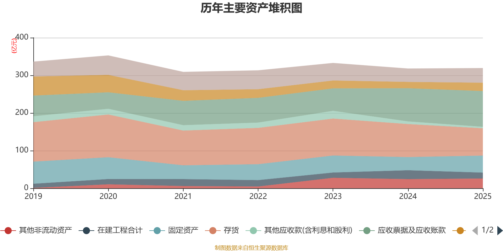 资产重大变化方面,截至2025年末,公司存货较上年末减少17.34%,占公司总资产比重下降4.87个百分点;固定资产较上年末增加29.67%,占公司总资产比重上升3.21个百分点;在建工程合计较上年末减少34.15%,占公司总资产比重下降2.55个百分点;应收票据及应收账款较上年末增加7.77%,占公司总资产比重上升2.04个百分点。
