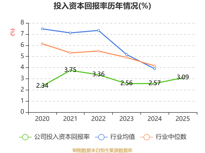 数据显示,2025年公司加权平均净资产收益率为4.47%,较上年同期上升0.62个百分点。公司2025年投入资本回报率为3.09%,较上年同期上升0.52个百分点。