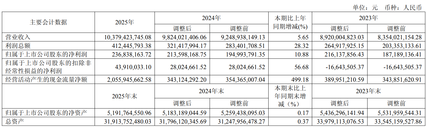 负债重大变化方面,截至2025年末,公司短期借款较上年末减少55.34%,占公司总资产比重下降5.84个百分点;长期借款较上年末增加10.58%,占公司总资产比重上升2.46个百分点;合同负债较上年末增加53.16%,占公司总资产比重上升1.45个百分点;一年内到期的非流动负债较上年末增加5.55%,占公司总资产比重上升0.69个百分点。
