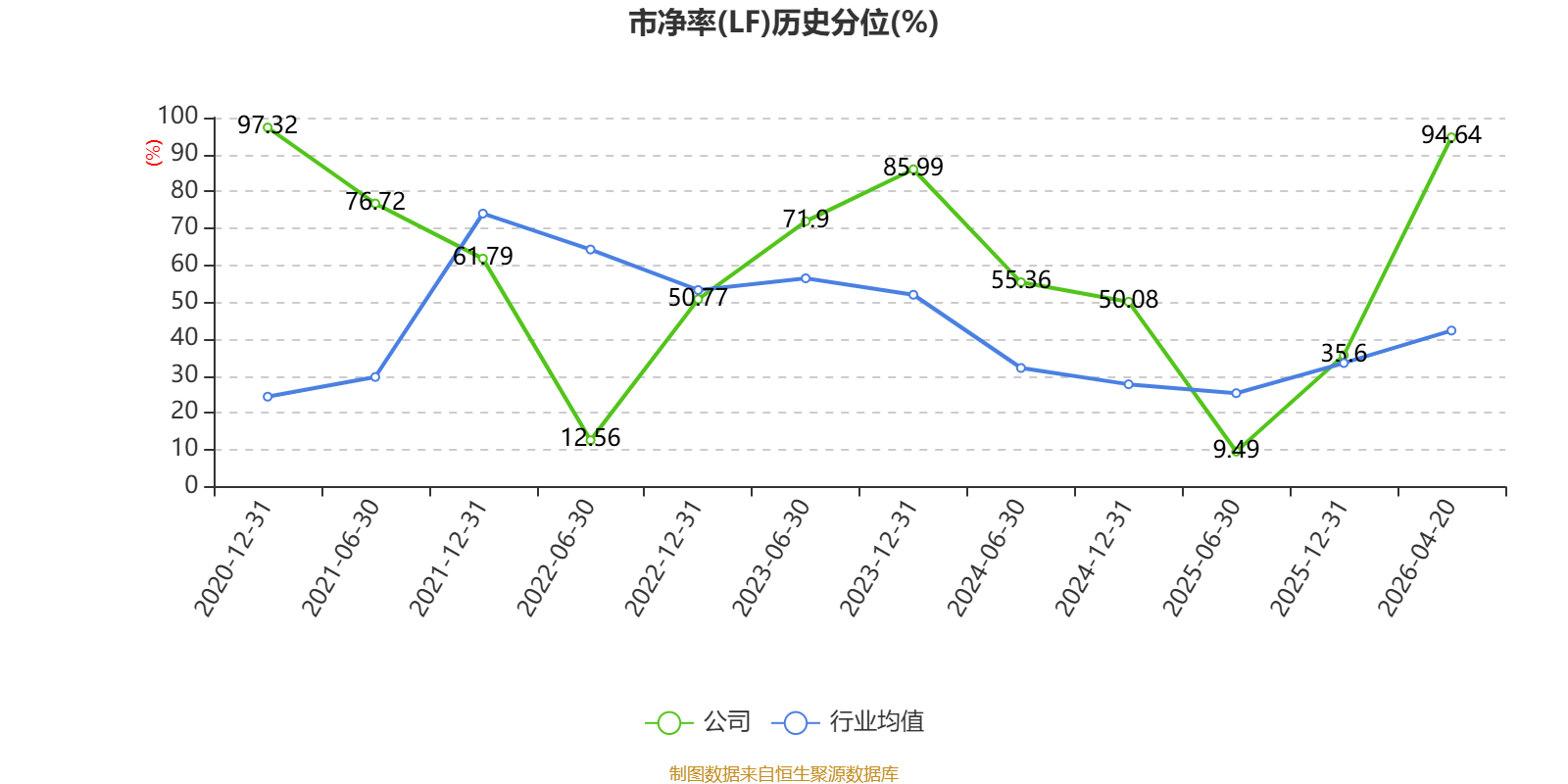 市盈率、市净率为负时,不显示当期分位数,会导致折线图中断。