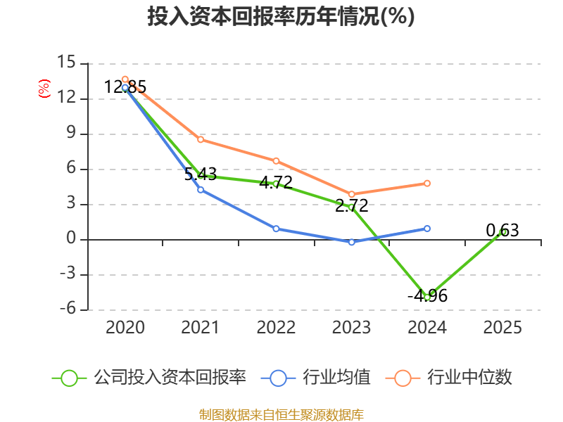 数据显示,2025年公司加权平均净资产收益率为-1.63%,较上年同期上升4.5个百分点。公司2025年投入资本回报率为0.63%,较上年同期上升5.59个百分点。