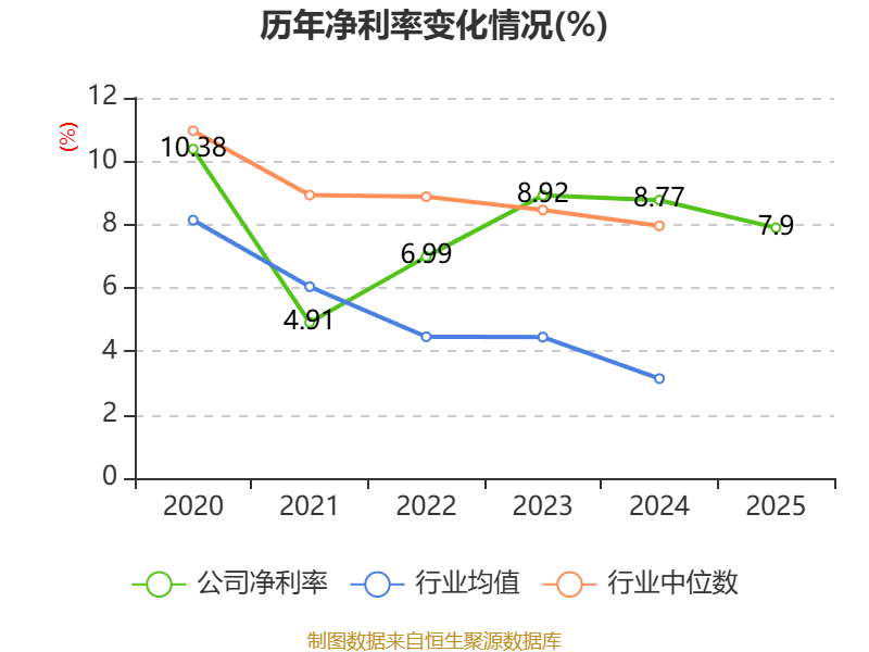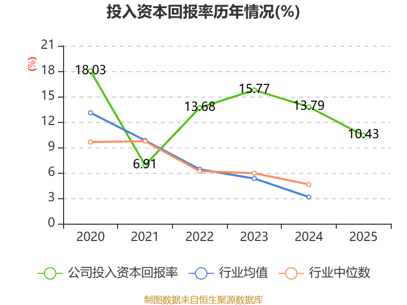 数据显示,2025年公司加权平均净资产收益率为11.07%,较上年同期下降7.19个百分点。公司2025年投入资本回报率为10.43%,较上年同期下降3.36个百分点。