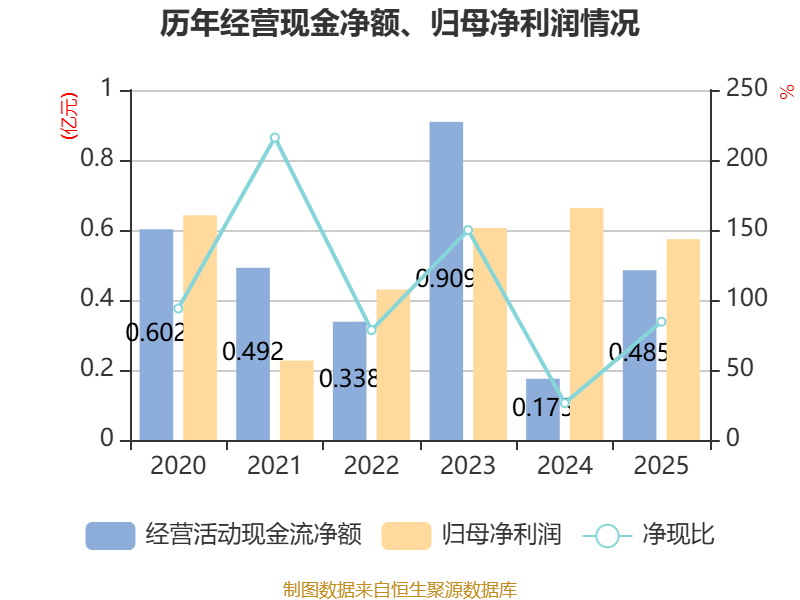 截至2025年,公司经营活动现金流净额为4854.01万元,同比增长177.97%;筹资活动现金流净额-3142.34万元,同比减少8674.76万元;投资活动现金流净额-5664.41万元,上年同期为-1449.79万元。
