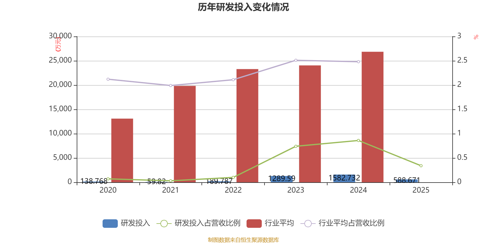 2025年全年,公司研发投入金额为588.67万元,同比下降62.81%;研发投入占营业收入比例为0.34%,相比上年同期下降0.52个百分点。此外,公司全年研发投入资本化率为65.84%。