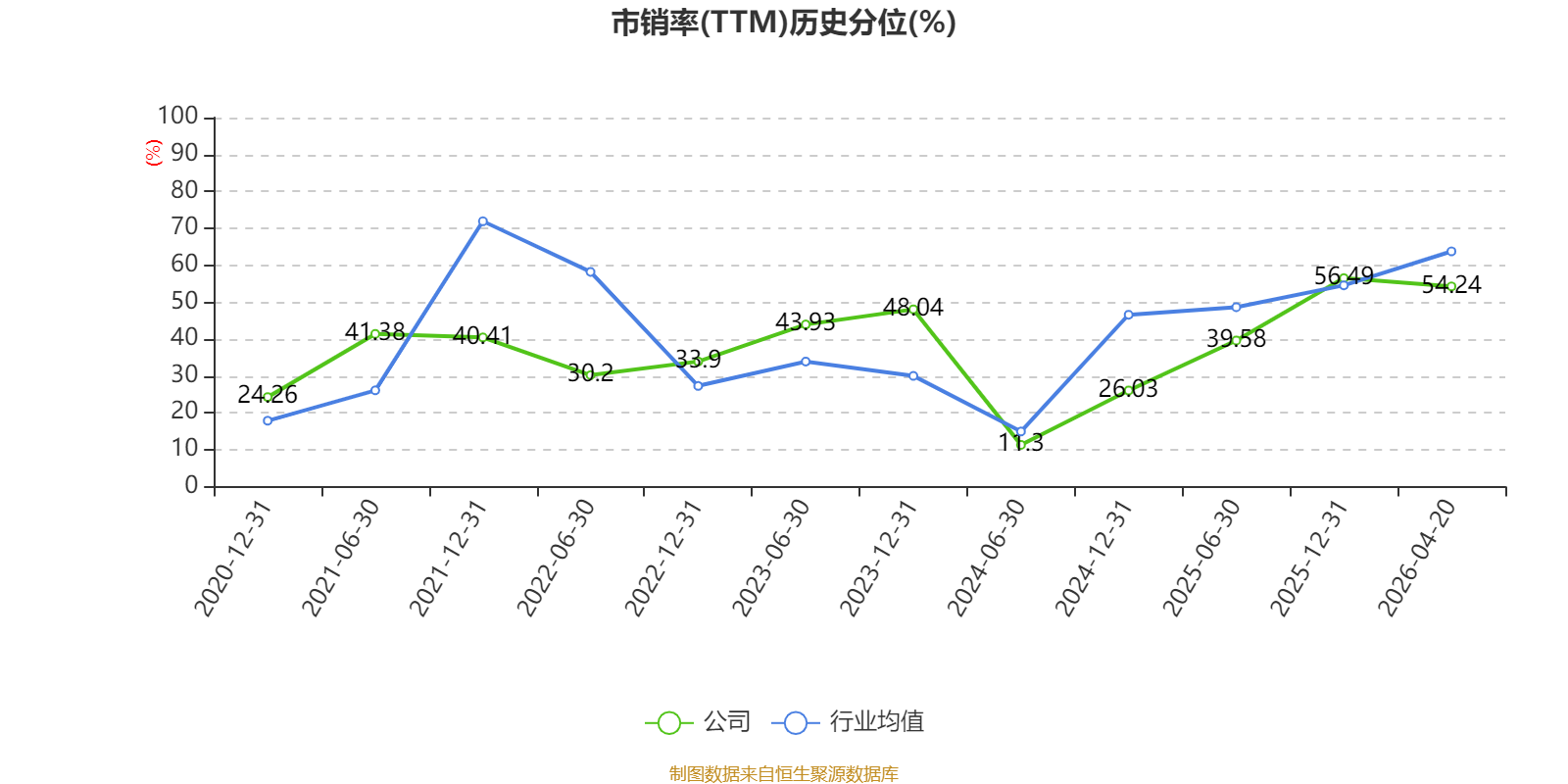 以4月20日收盘价计算,英力特目前市盈率(TTM)约为-5.87倍,市净率(LF)约2.65倍,市销率(TTM)约1.9倍。