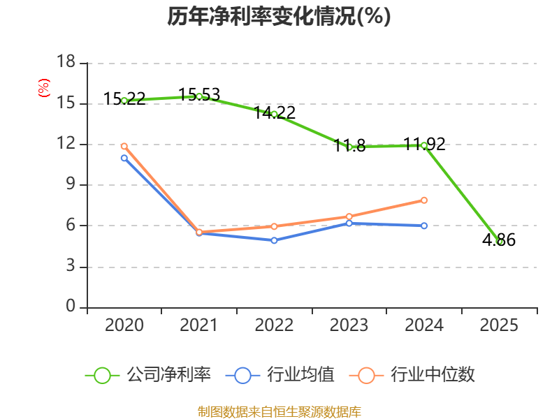 数据显示,2025年公司加权平均净资产收益率为5.71%,较上年同期下降9.42个百分点。公司2025年投入资本回报率为4.66%,较上年同期下降5.47个百分点。
