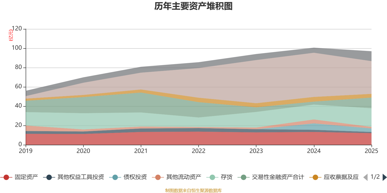 资产重大变化方面,截至2025年末,公司货币资金较上年末减少26.01%,占公司总资产比重下降10.56个百分点;交易性金融资产合计较上年末增加262.78%,占公司总资产比重上升8.39个百分点;存货较上年末增加25.02%,占公司总资产比重上升4.58个百分点;一年内到期的非流动资产占公司总资产的4.06%,上年末为0。