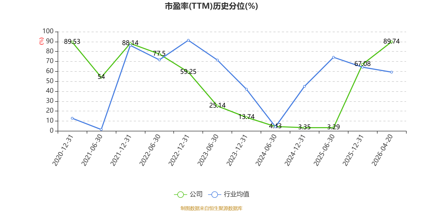 市盈率、市净率为负时,不显示当期分位数,会导致折线图中断。