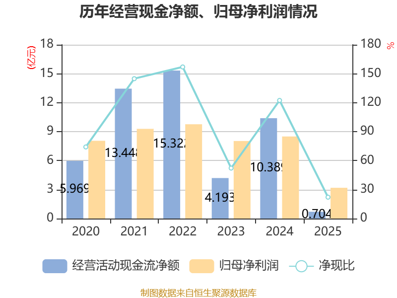 截至2025年,公司经营活动现金流净额为7044.73万元,同比下降93.22%;筹资活动现金流净额-8.32亿元,同比减少3.97亿元;投资活动现金流净额-4.2亿元,上年同期为-5.82亿元。