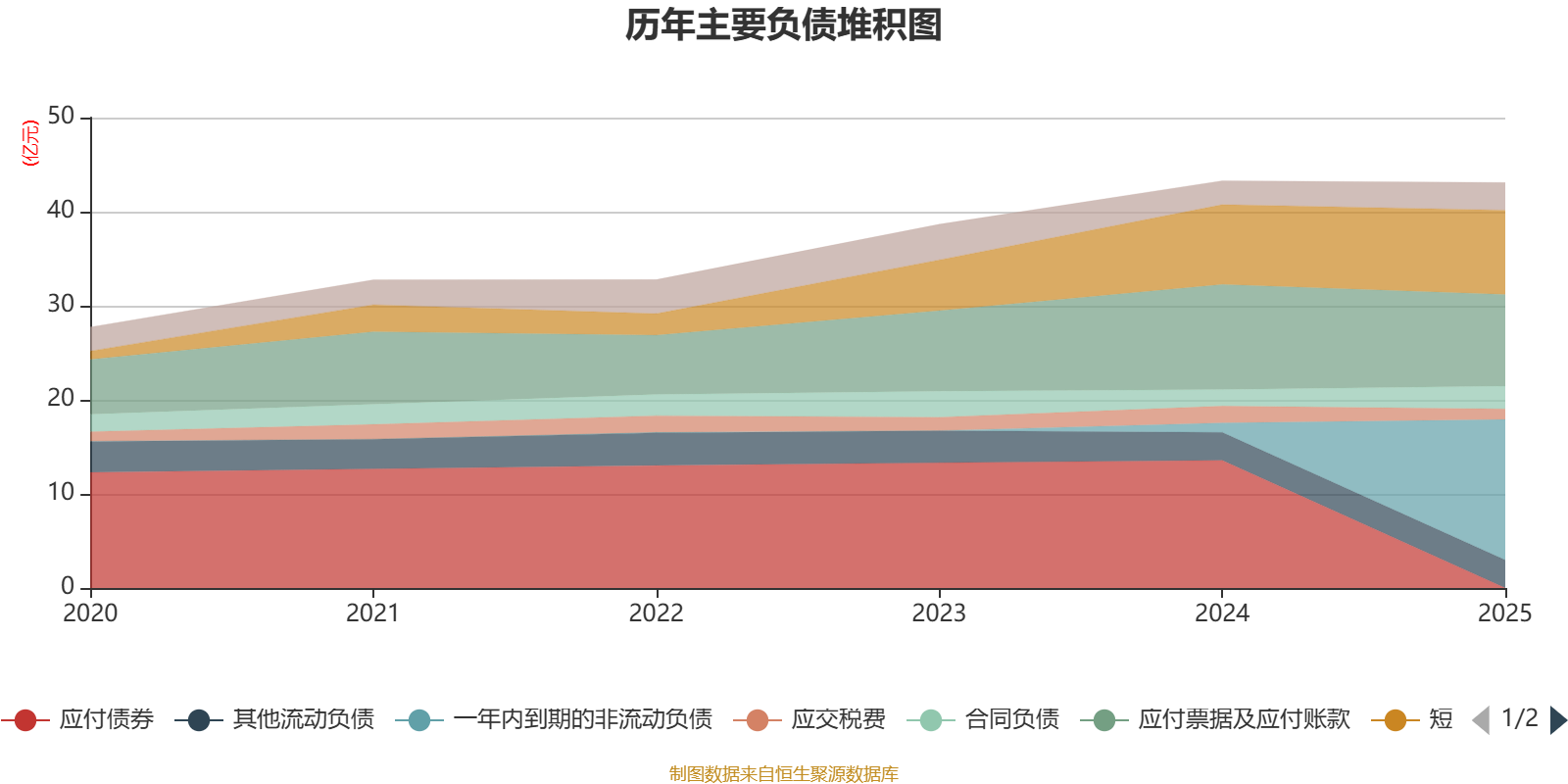 负债重大变化方面,截至2025年末,公司一年内到期的非流动负债较上年末增加1372.39%,占公司总资产比重上升14.41个百分点;应付债券较上年末减少100%,占公司总资产比重下降13.49个百分点;应付票据及应付账款较上年末减少12.71%,占公司总资产比重下降1.04个百分点;短期借款较上年末增加5.53%,占公司总资产比重上升0.81个百分点。