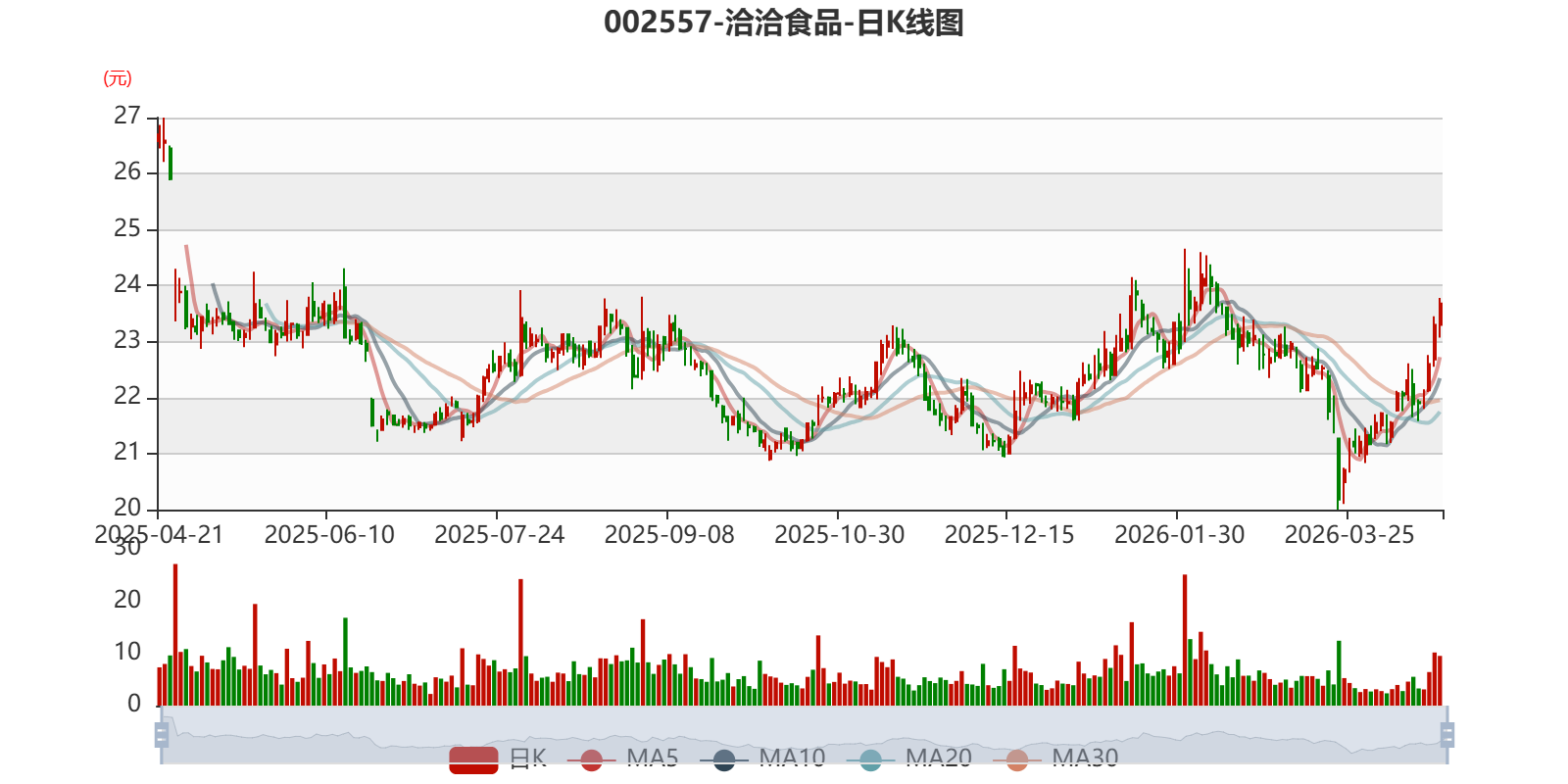 以4月20日收盘价计算,洽洽食品目前市盈率(TTM)约为37.62倍,市净率(LF)约2.24倍,市销率(TTM)约1.82倍。