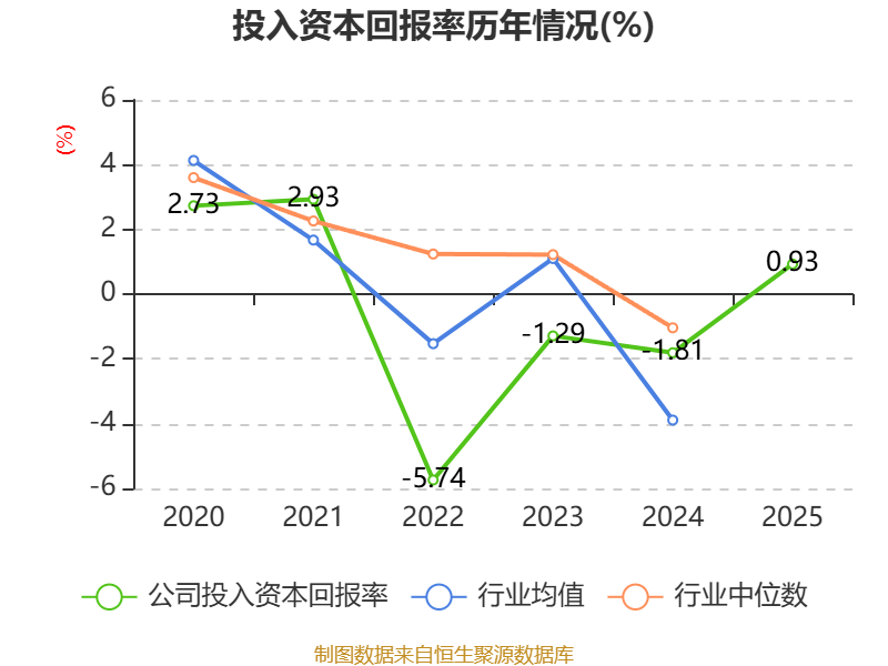 数据显示,2025年公司加权平均净资产收益率为-158.38%,较上年同期下降93.75个百分点。公司2025年投入资本回报率为0.93%,较上年同期上升2.74个百分点。