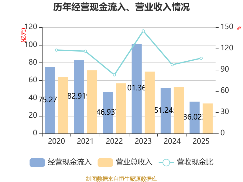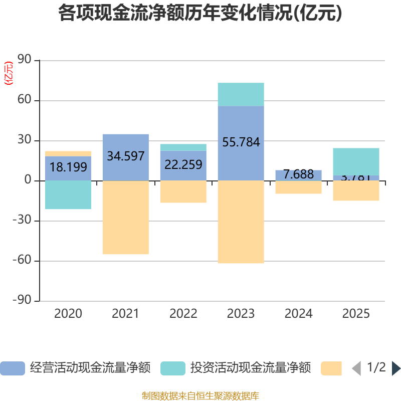 截至2025年,公司经营活动现金流净额为3.78亿元,同比下降50.81%;筹资活动现金流净额-15.13亿元,同比减少5.56亿元;投资活动现金流净额20.42亿元,上年同期为-3377.83万元。
