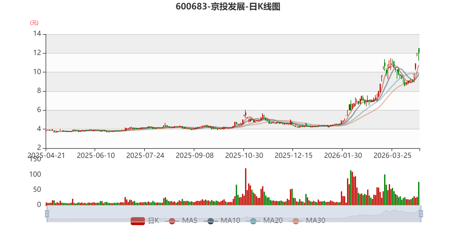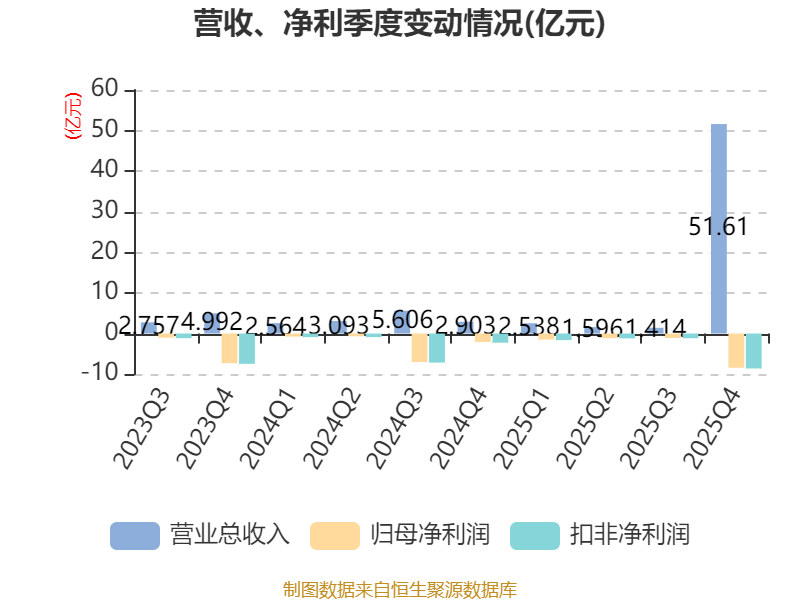 中证智能财讯京投发展(600683)4月21日披露2025年年度报告。2025年,公司实现营业总收入57.16亿元,同比增长303.48%;归母净利润亏损12.16亿元,上年同期亏损10.55亿元;扣非净利润亏损12.58亿元,上年同期亏损11.19亿元;经营活动产生的现金流量净额为6.79亿元,上年同期为-62.11亿元;报告期内,京投发展基本每股收益为-1.99元。