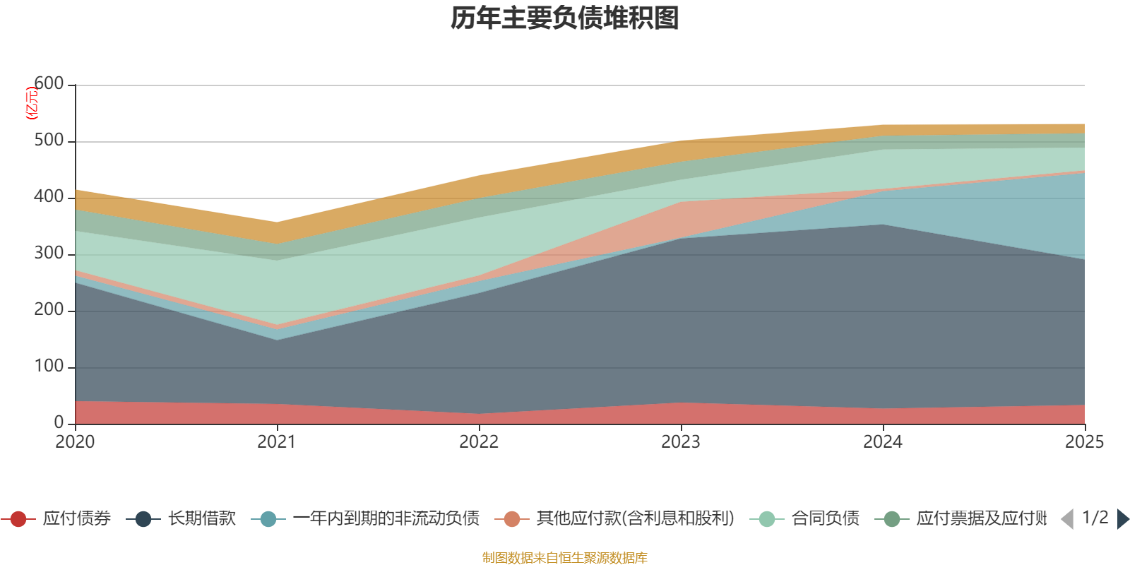 负债重大变化方面,截至2025年末,公司一年内到期的非流动负债较上年末增加159.94%,占公司总资产比重上升17.09个百分点;长期借款较上年末减少20.97%,占公司总资产比重下降8.89个百分点;合同负债较上年末减少42.31%,占公司总资产比重下降4.51个百分点;应付债券较上年末增加23.14%,占公司总资产比重上升1.35个百分点。