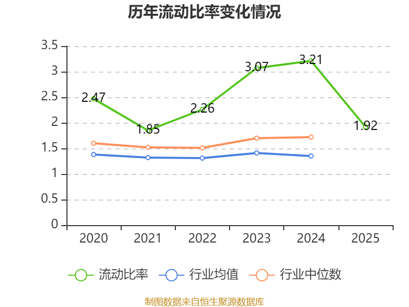 2025年,公司流动比率为1.92,速动比率为0.21。