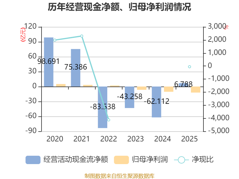 截至2025年,公司经营活动现金流净额为6.79亿元,同比增加68.9亿元;筹资活动现金流净额-11.16亿元,同比减少14.55亿元;投资活动现金流净额278.43万元,上年同期为-1.84亿元。
