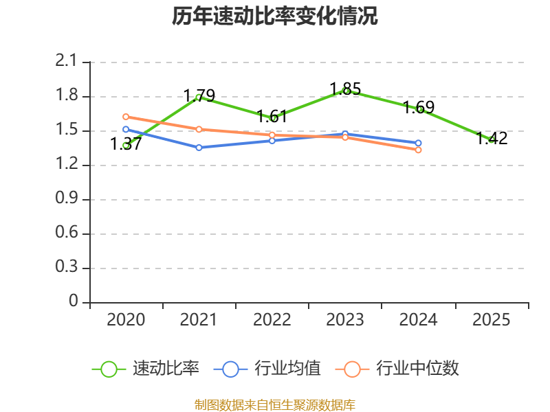 2025年,公司流动比率为1.93,速动比率为1.42。