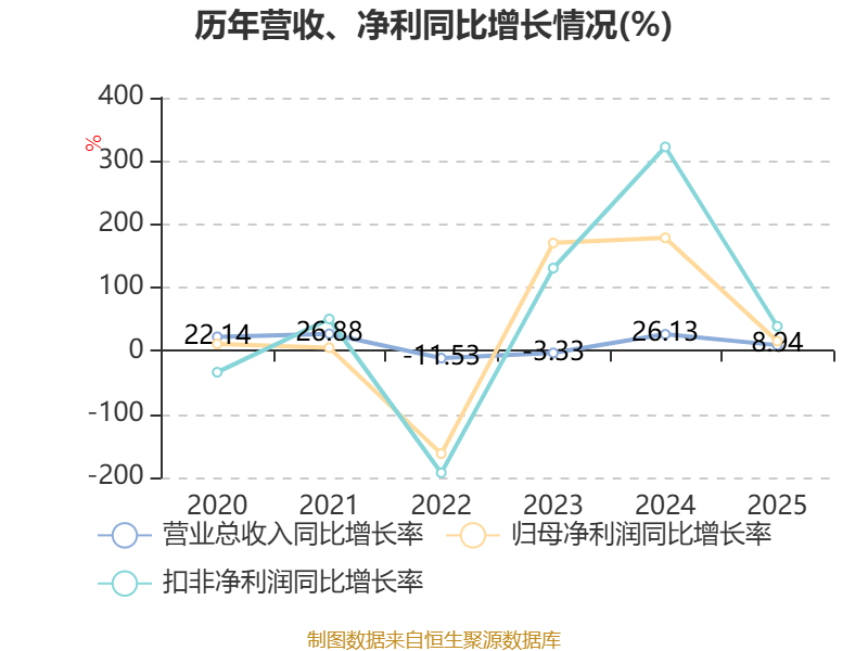 中证智能财讯中恒电气(002364)4月21日披露2025年年度报告。2025年,公司实现营业总收入21.37亿元,同比增长8.94%;归母净利润1.26亿元,同比增长15.27%;扣非净利润1.15亿元,同比增长38.73%;经营活动产生的现金流量净额为2.43亿元,同比下降48.06%;报告期内,中恒电气基本每股收益为0.22元,加权平均净资产收益率为5.17%。公司2025年度分配预案为:拟向全体股东每10股派现1元(含税)。