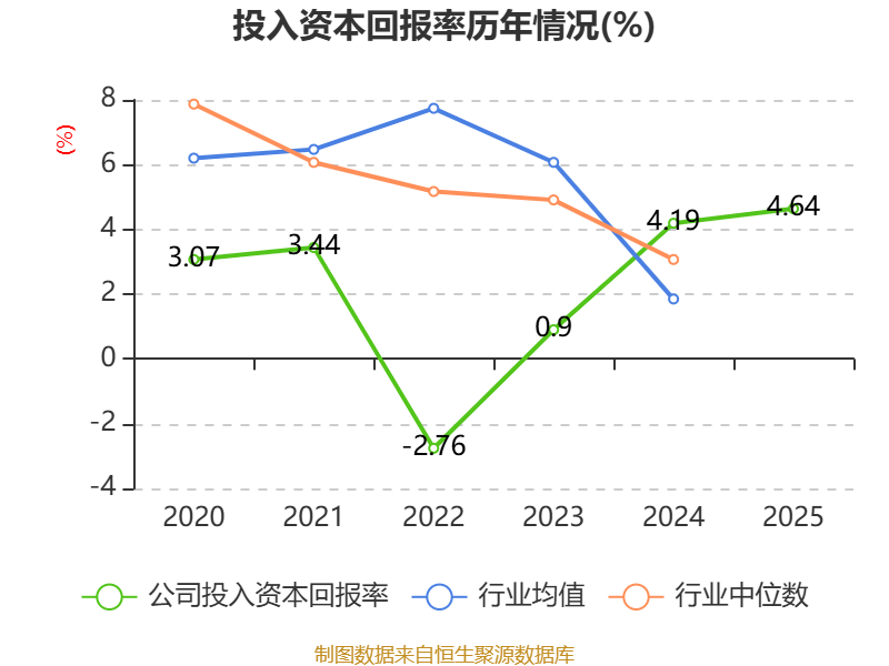 数据显示,2025年公司加权平均净资产收益率为5.17%,较上年同期上升0.49个百分点。公司2025年投入资本回报率为4.64%,较上年同期上升0.45个百分点。
