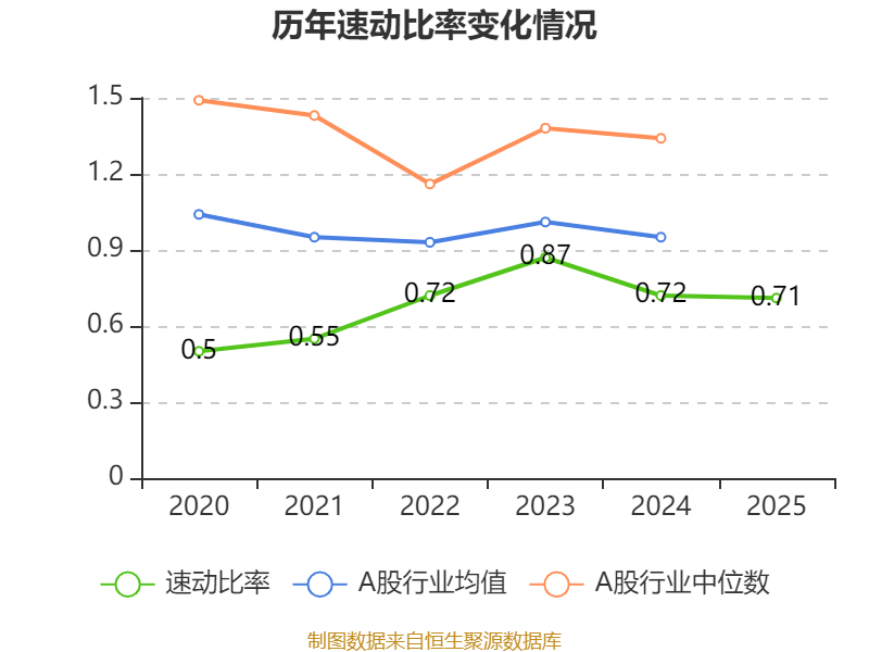 2025年,公司流动比率为1.21,速动比率为0.71。