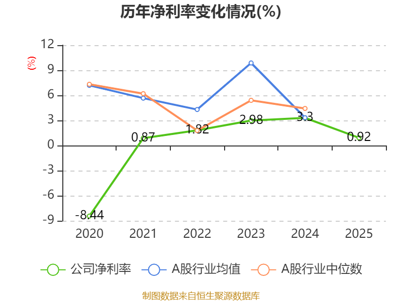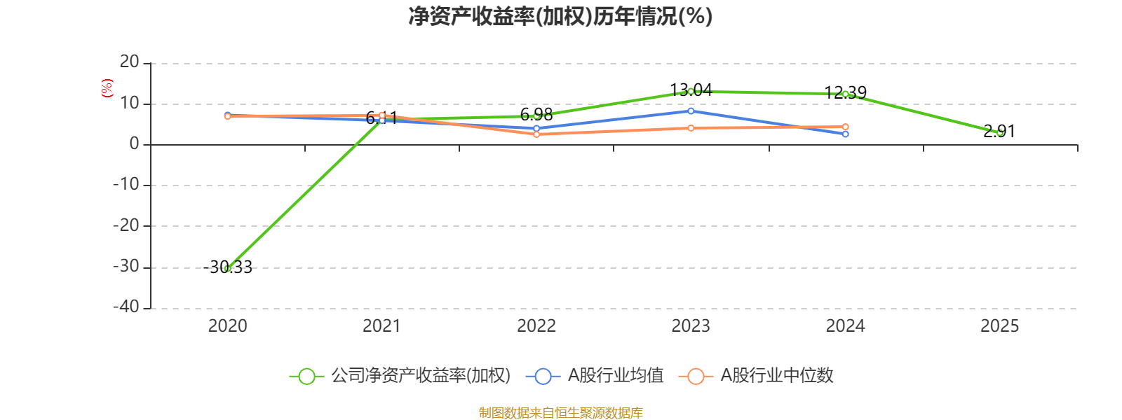 数据显示,2025年公司平均净资产收益率为2.91%,较上年同期下降9.48个百分点。