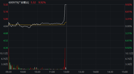 其中,粤电力A、广安爱众盘中均呈现直线拉升走势,两股均在10分钟内拉升涨停。