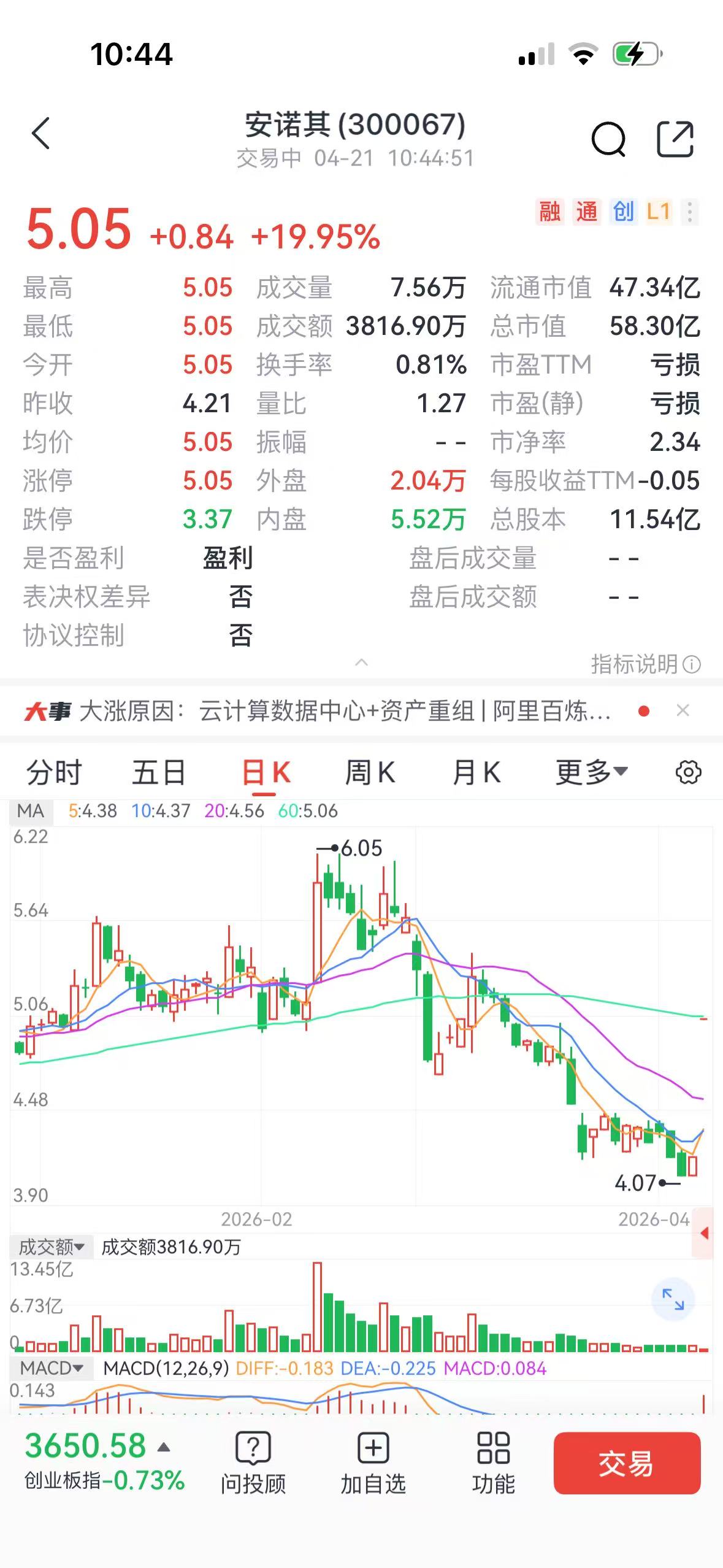 4月20日晚间,上海安诺其集团股份有限公司(以下简称“安诺其”)发布公告,披露发行股份及支付现金购买资产并募集配套资金暨关联交易预案,公司股票也将于4月21日起复牌。4月21日开盘后,这家创业板公司的股票直接“一字”涨停。截至记者发稿,公司股价报5.05元/股。