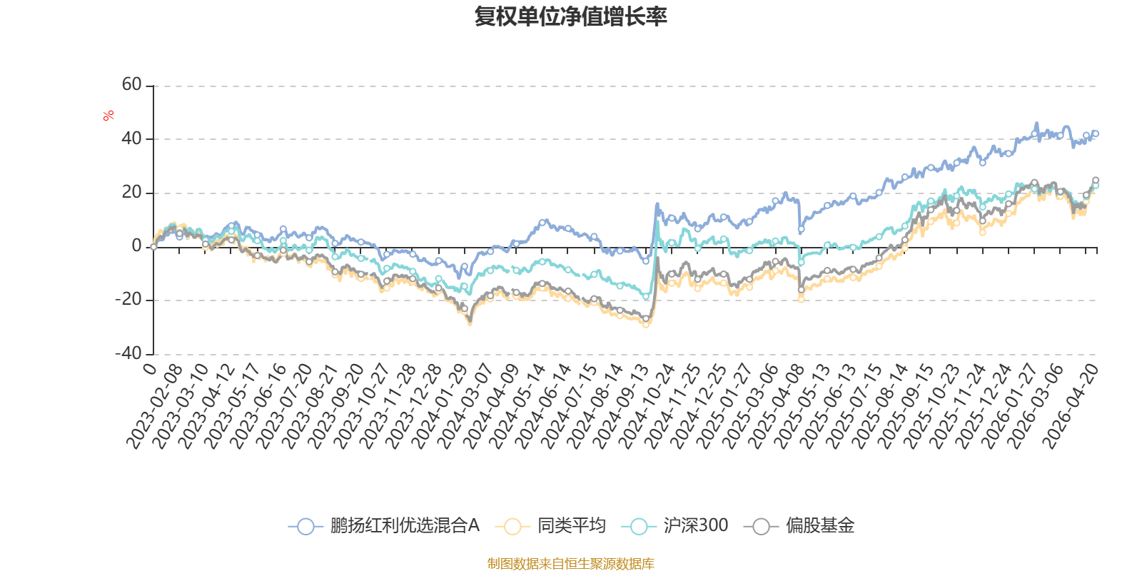 截至4月20日,鹏扬红利优选混合A近三个月复权单位净值增长率为1.42%,位于同类可比基金305/621;近半年复权单位净值增长率为9.97%,位于同类可比基金326/621;近一年复权单位净值增长率为28.49%,位于同类可比基金424/618;近三年复权单位净值增长率为31.19%,位于同类可比基金213/560。