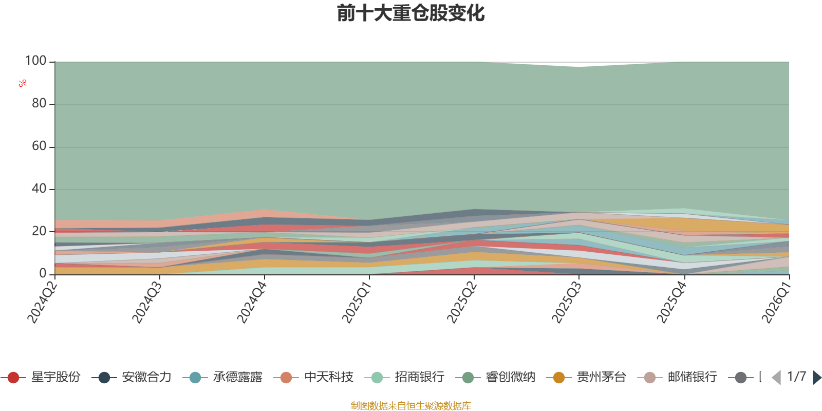 截至2026年一季度末,基金十大重仓股分别是邮储银行、海康威视、中金公司、宝钢股份、中信特钢、四川路桥、高德红外、睿创微纳、承德露露、重庆银行。