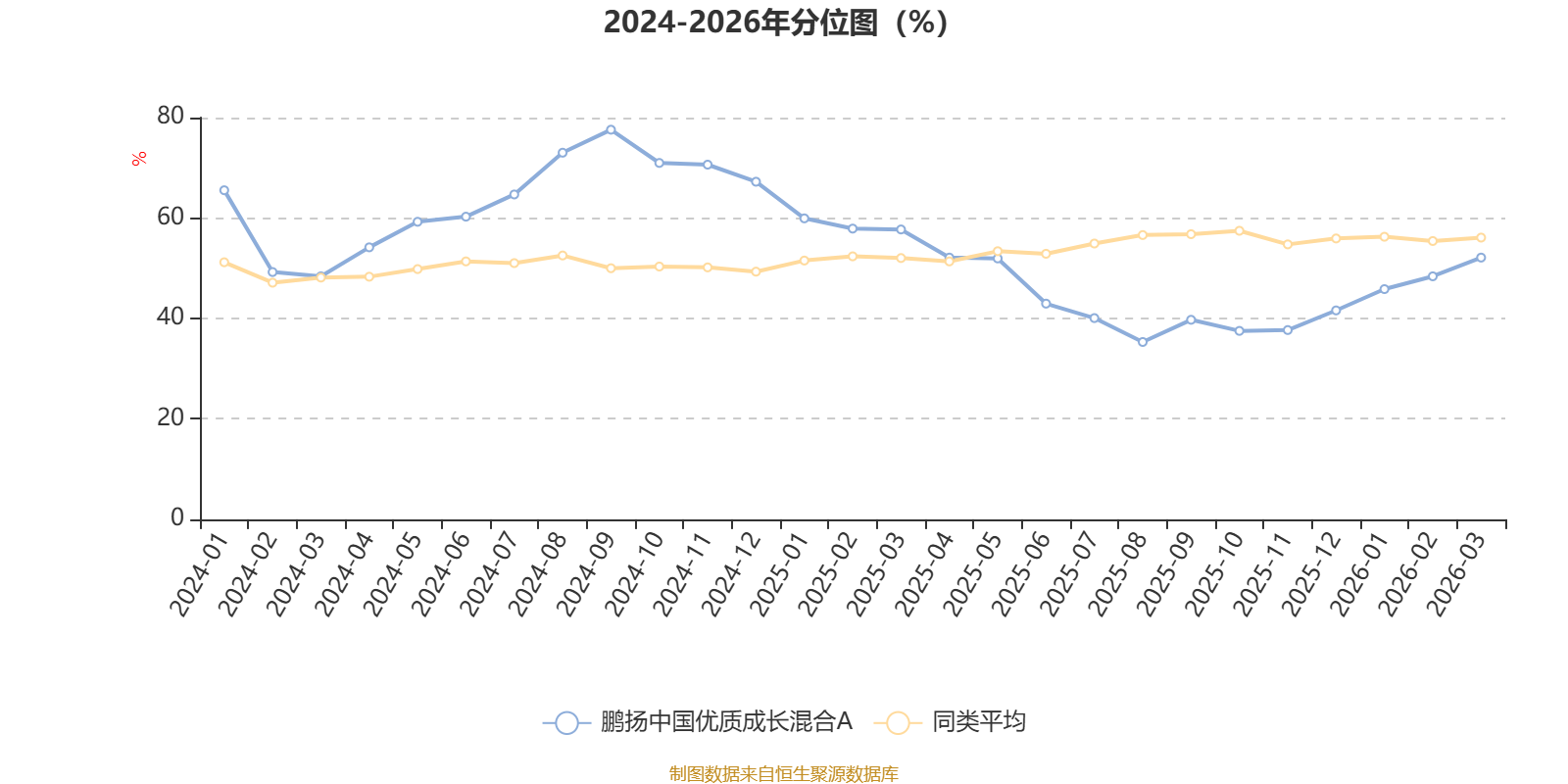 通过所选区间该基金净值增长率分位图,可以观察该基金与同类基金业绩比较情况。图为坐标原点到区间内某时点的净值增长率在同类基金中的分位数。