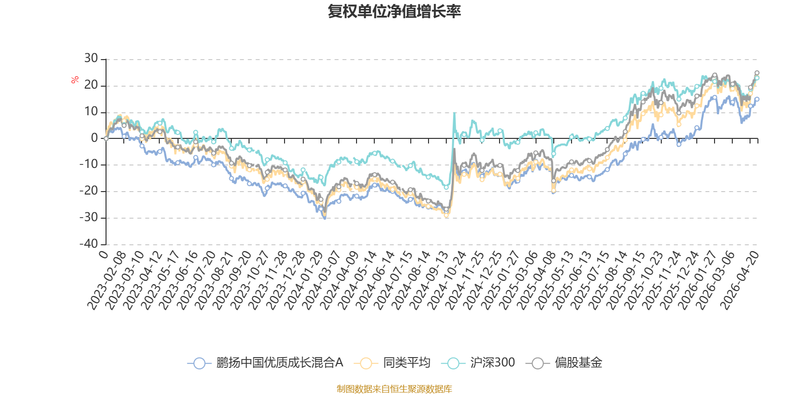 截至4月20日,鹏扬中国优质成长混合A近三个月复权单位净值增长率为0.29%,位于同类可比基金338/621;近半年复权单位净值增长率为15.13%,位于同类可比基金232/621;近一年复权单位净值增长率为36.73%,位于同类可比基金342/618;近三年复权单位净值增长率为21.09%,位于同类可比基金282/560。