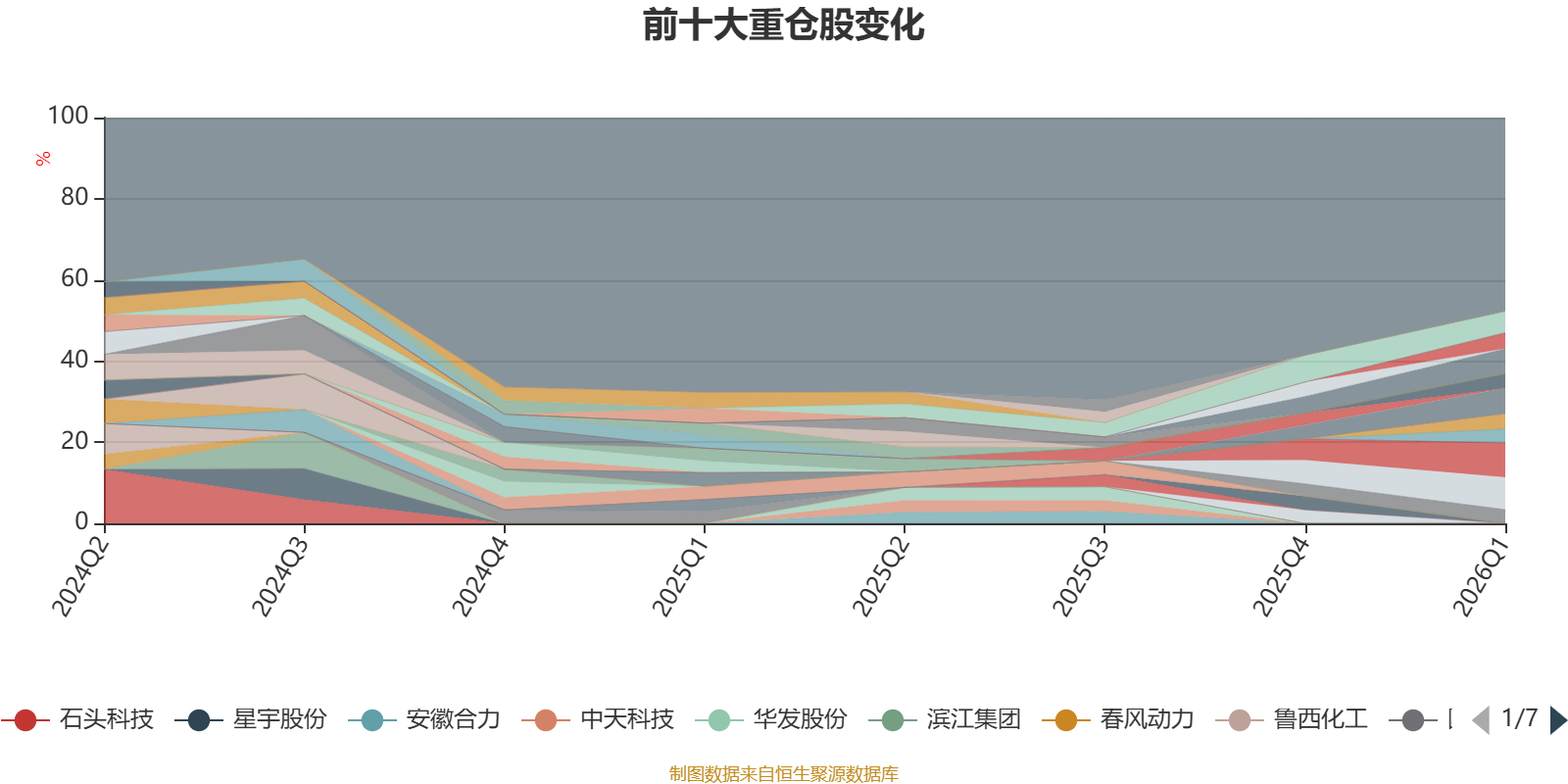 截至2026年一季度末,基金十大重仓股分别是恩华药业、上海机场、伊利股份、顺丰控股、恒瑞医药、爱旭股份、璞泰来、水晶光电、海大集团、长春高新。