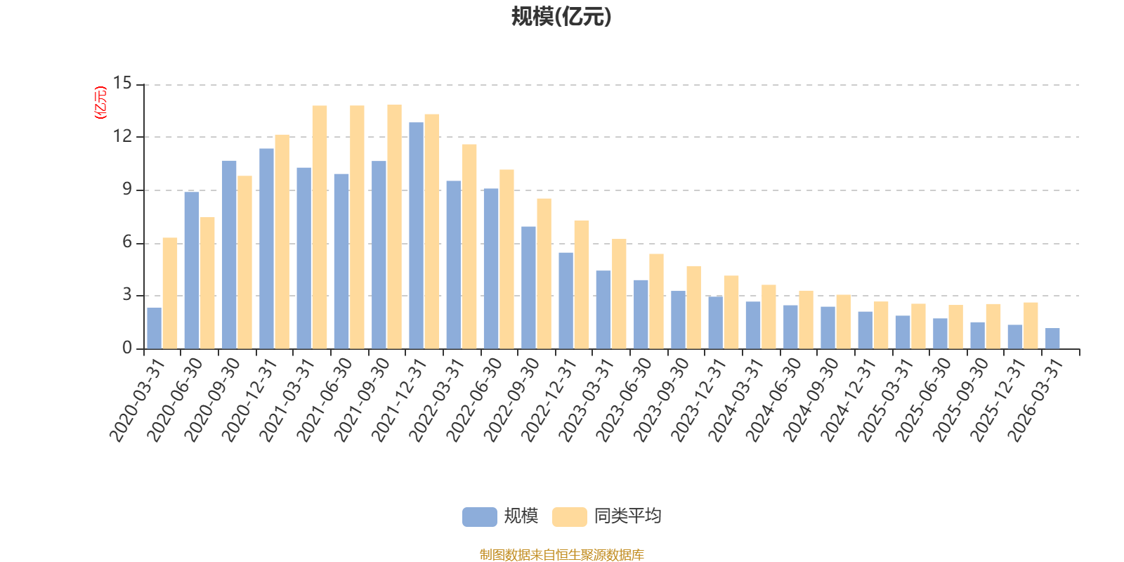 AI基金鹏扬景欣混合A(005664)披露2026年一季报,第一季度基金利润77.76万元,加权平均基金份额本期利润0.0095元。报告期内,基金净值增长率为0.44%,截至一季度末,基金规模为1.18亿元。