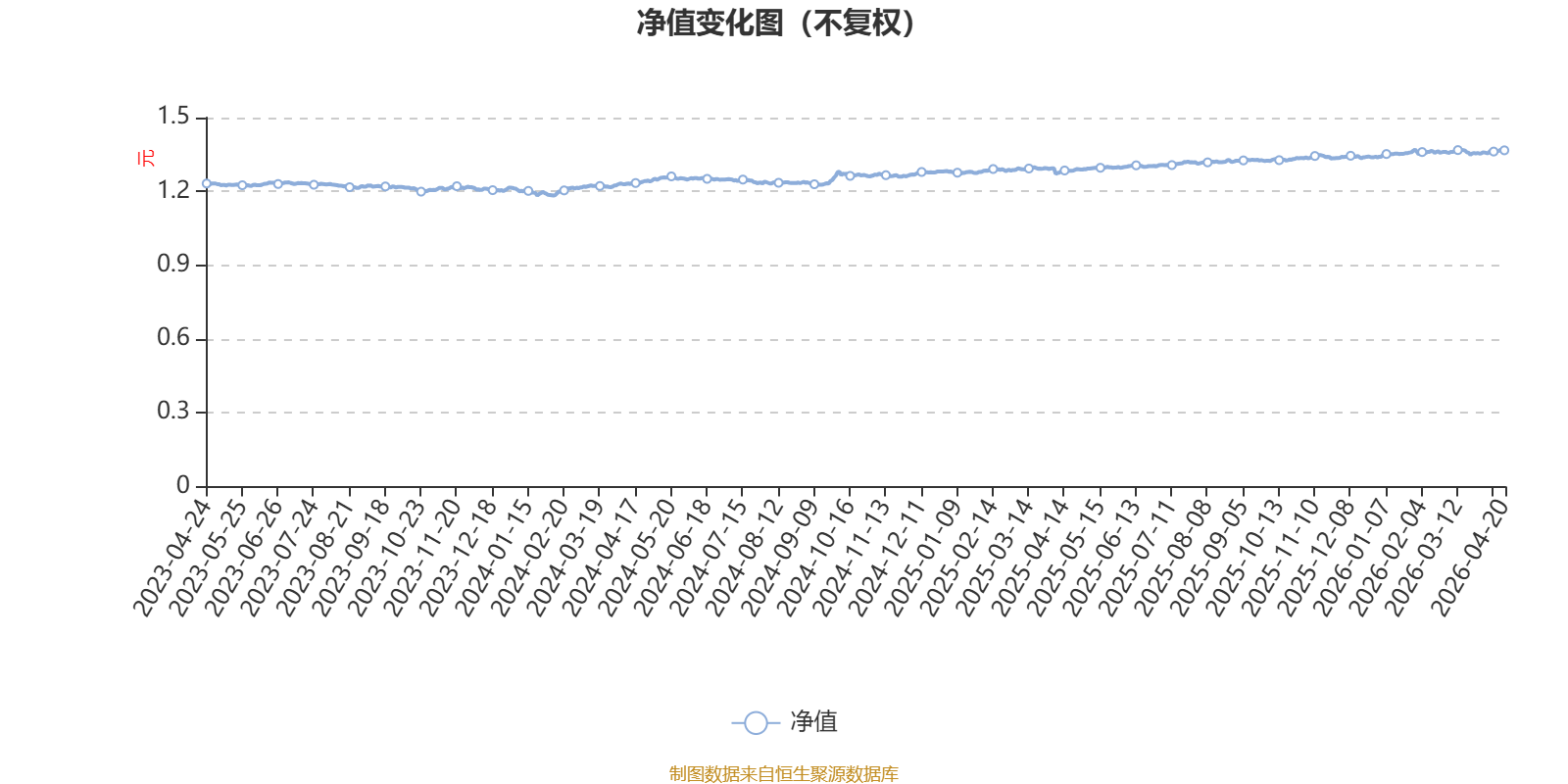 基金管理人在一季报中表示,债券操作方面,本基金本报告期内维持中性久期,以票息持仓和结构调整为主,坚持利率策略与高等级信用策略并举,并持续灵活调整组合持仓,注重资产性价比。1月,商品权益表现超预期,债市承压,收益率快速上行,后随着监管降温、配置盘入场叠加结构性降息落地,债市震荡修复;2月,风险偏好明显回落,交易盘重新主导市场,春节后,受两会政策博弈和海外关税利好,债市维持偏弱震荡;3月,美伊局势主导下,债市交易逻辑在“滞”和“胀”层面切换,曲线陡峭化加深。整体看,1季度债券市场呈现“长端承压、中短端强势、信用利差明显收窄”的显著分化特征,因此本基金债券投资以控制组合波动、获取稳定收益为主要策略目标,维持中性久期,采用票息策略和杠杆策略,以中短端信用持仓为主。