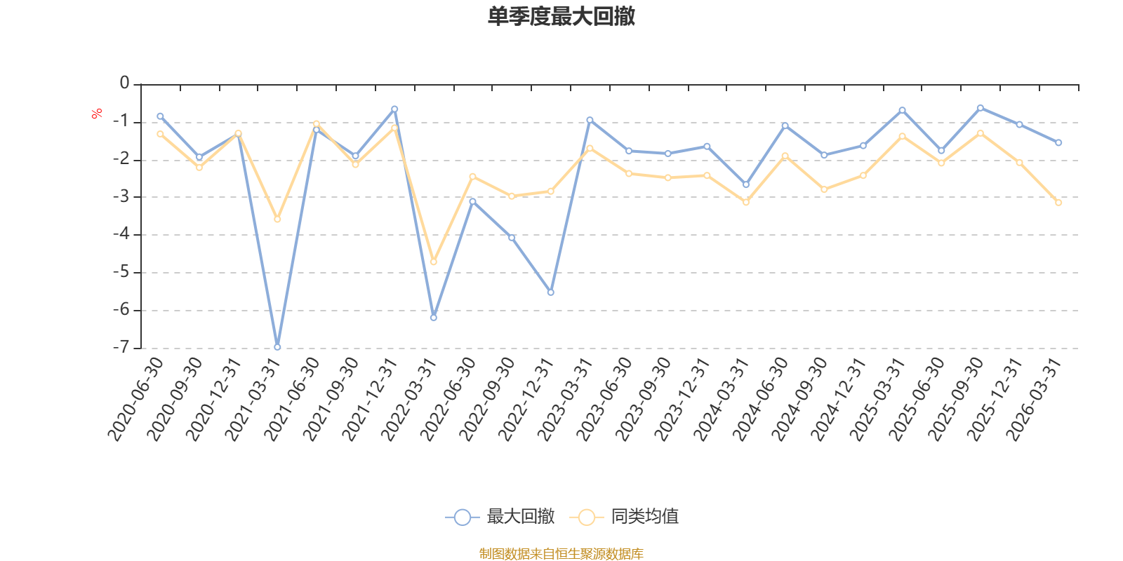 截至4月20日,基金近三年最大回撤为4.41%,同类可比基金排名169/535。单季度最大回撤出现在2021年一季度,为6.97%。