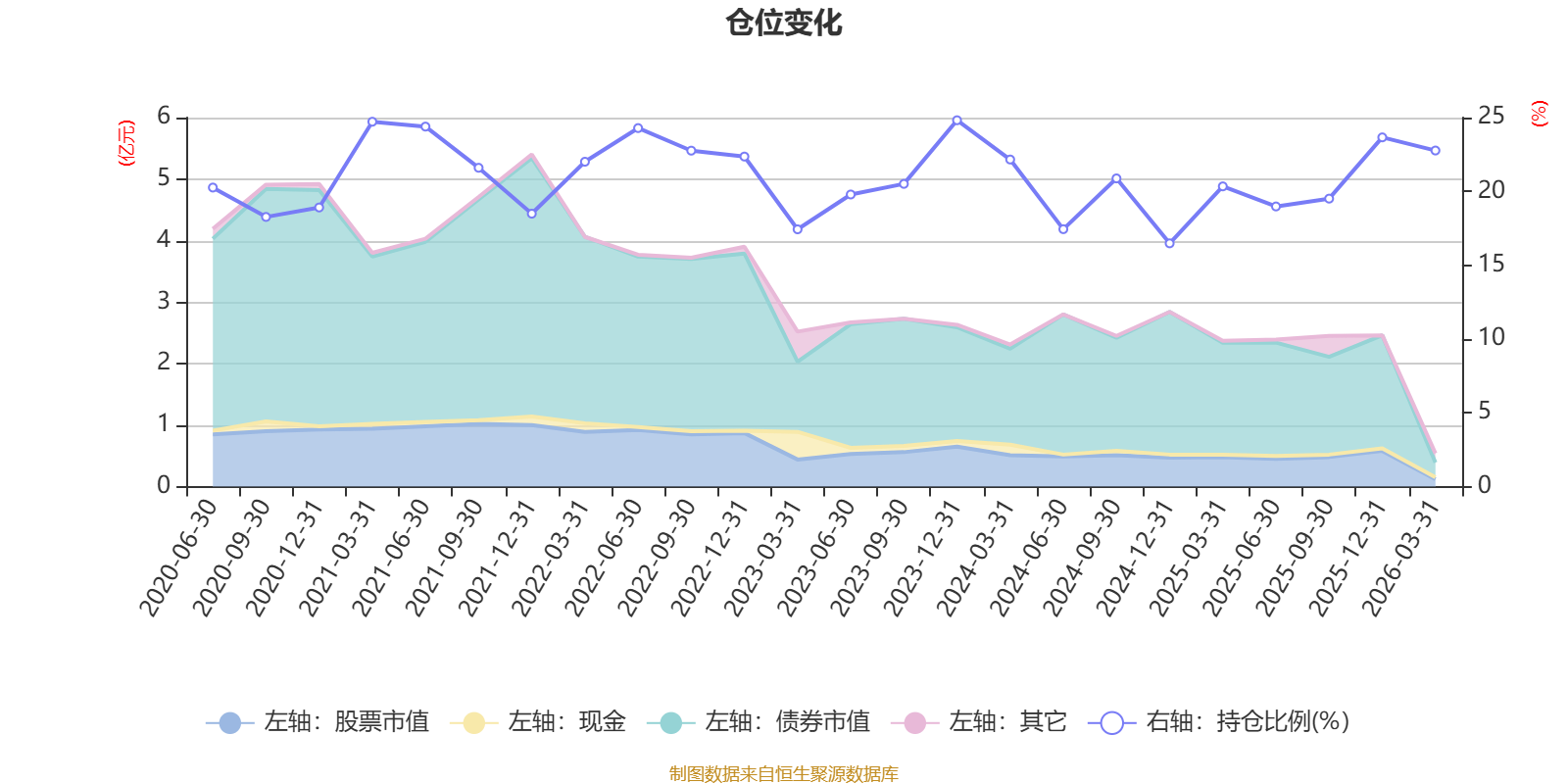 据定期报告数据统计,近三年平均股票仓位为20.61%,同类平均为19.03%。2023年末基金达到24.82%的最高仓位,2024年末最低,为16.48%。