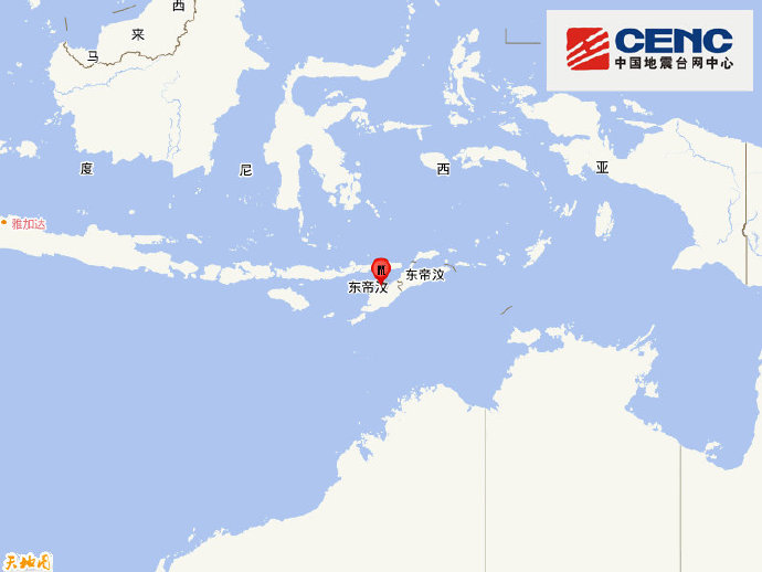 帝汶岛附近海域发生5.6级地震,震源深度80千米