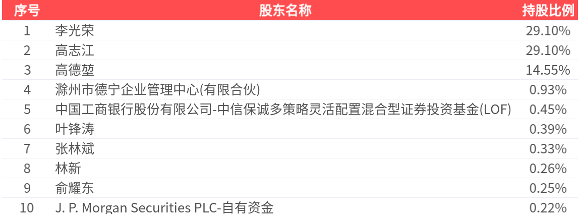 公司股东户数为7582户,前十大股东持股数量为7123.38万股,占总股本比例为75.58%,前十大股东持股情况如下: