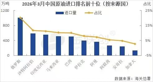 受美伊战事影响,中国3月进口油气格局有所变化——中东原油萎缩明显,俄油进口放量。