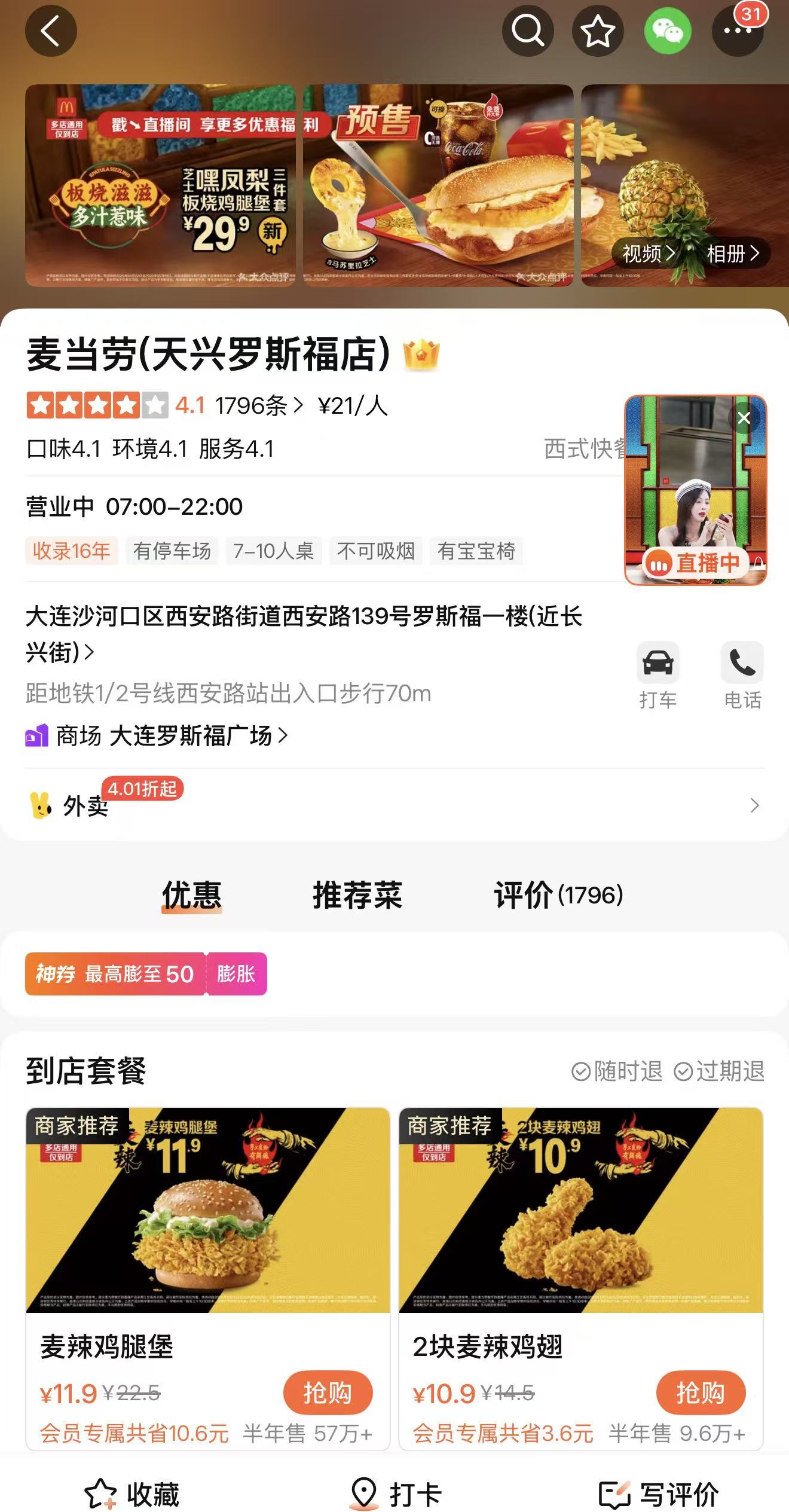 窄门餐眼数据显示,截至4月11日,麦当劳全国在营门店8592家,人均消费27.56元。其中,在辽宁,共有224家在营门店。界面新闻记者搜索大众点评显示,在大连,麦当劳有相关门店80多家。