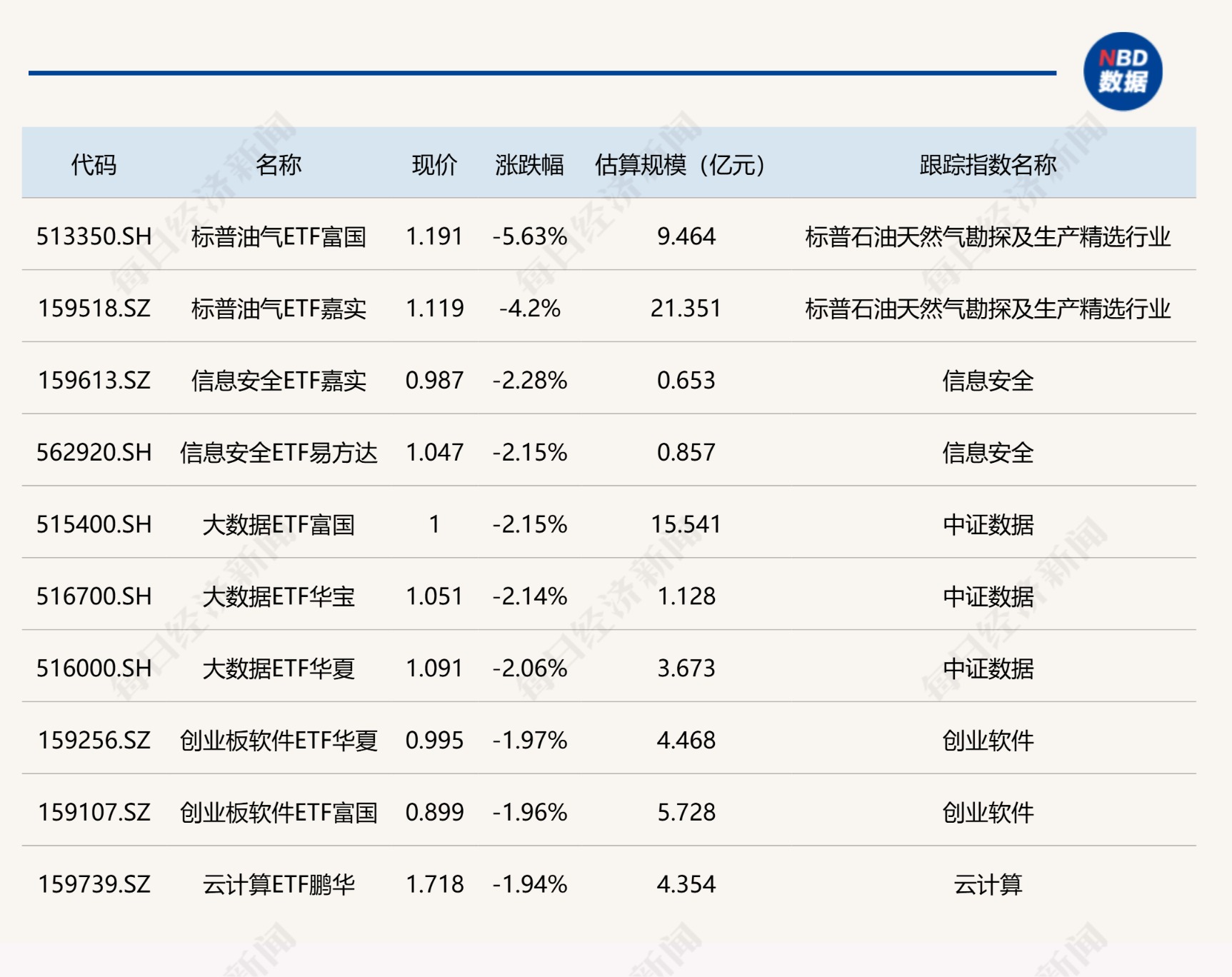 ETF今日收评 | 中韩半导体、电池相关ETF涨超2%,标普油气ETF跌超5%