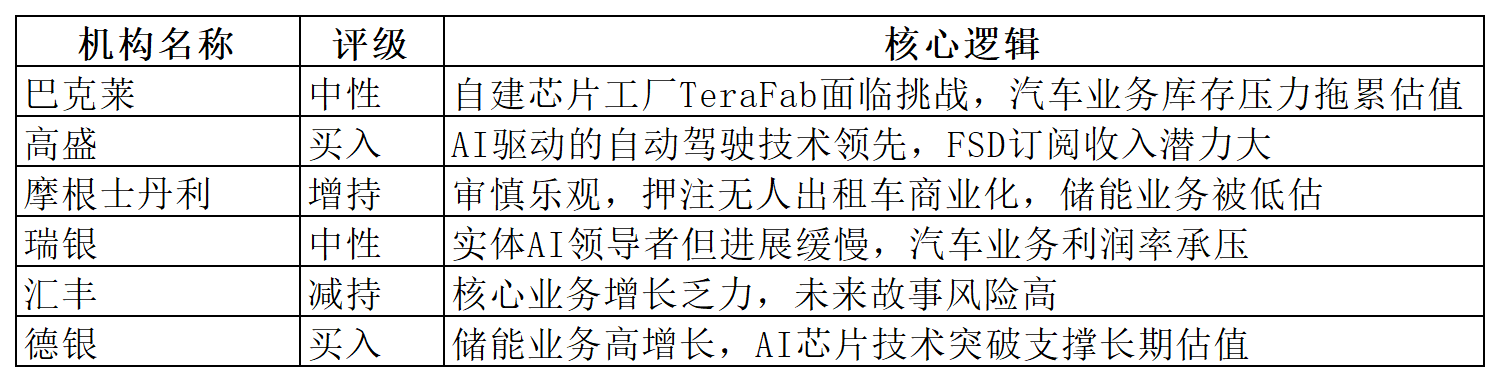 底盘业务放缓的当下,上述节点的任何实质性推进,都将成为支撑估值的重要砝码;反之,若兑现再度延后,特斯拉将面临"故事溢价"与"业绩现实"的双重挤压。
