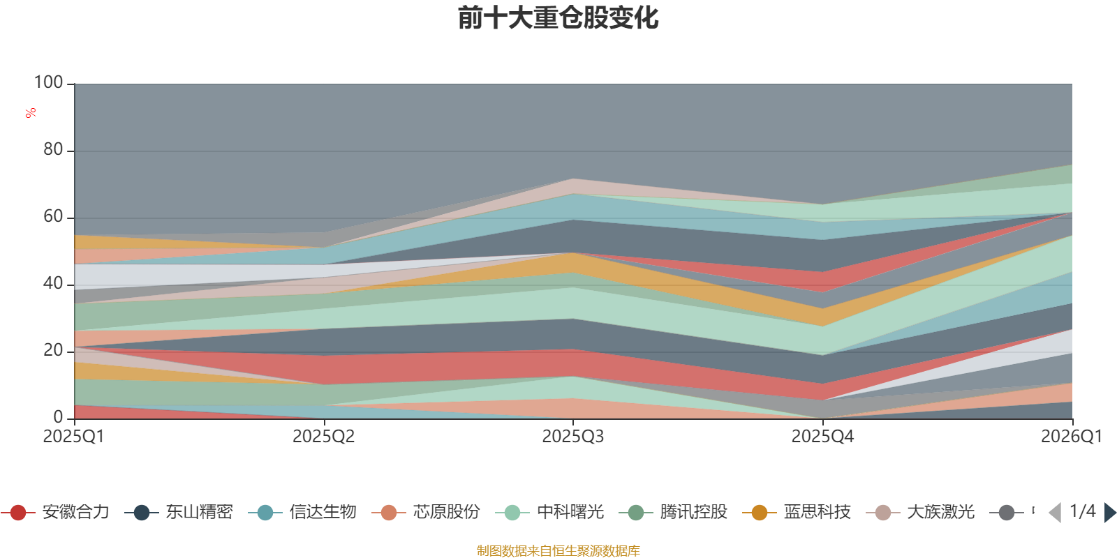 该基金持股集中度较高。截至2026年一季度末,基金十大重仓股分别是中际旭创、东方电气、中国动力、长芯博创、新易盛、长飞光纤、天孚通信、新金路、芯原股份、东山精密。