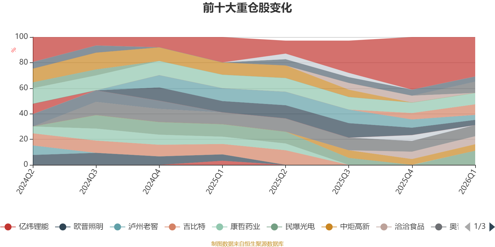 该基金持股集中度较高。截至2026年一季度末,基金十大重仓股分别是民爆光电、格力电器、洋河股份、奥普科技、日月股份、洽洽食品、中炬高新、阿里巴巴-W、索菲亚、小鹏集团-W。