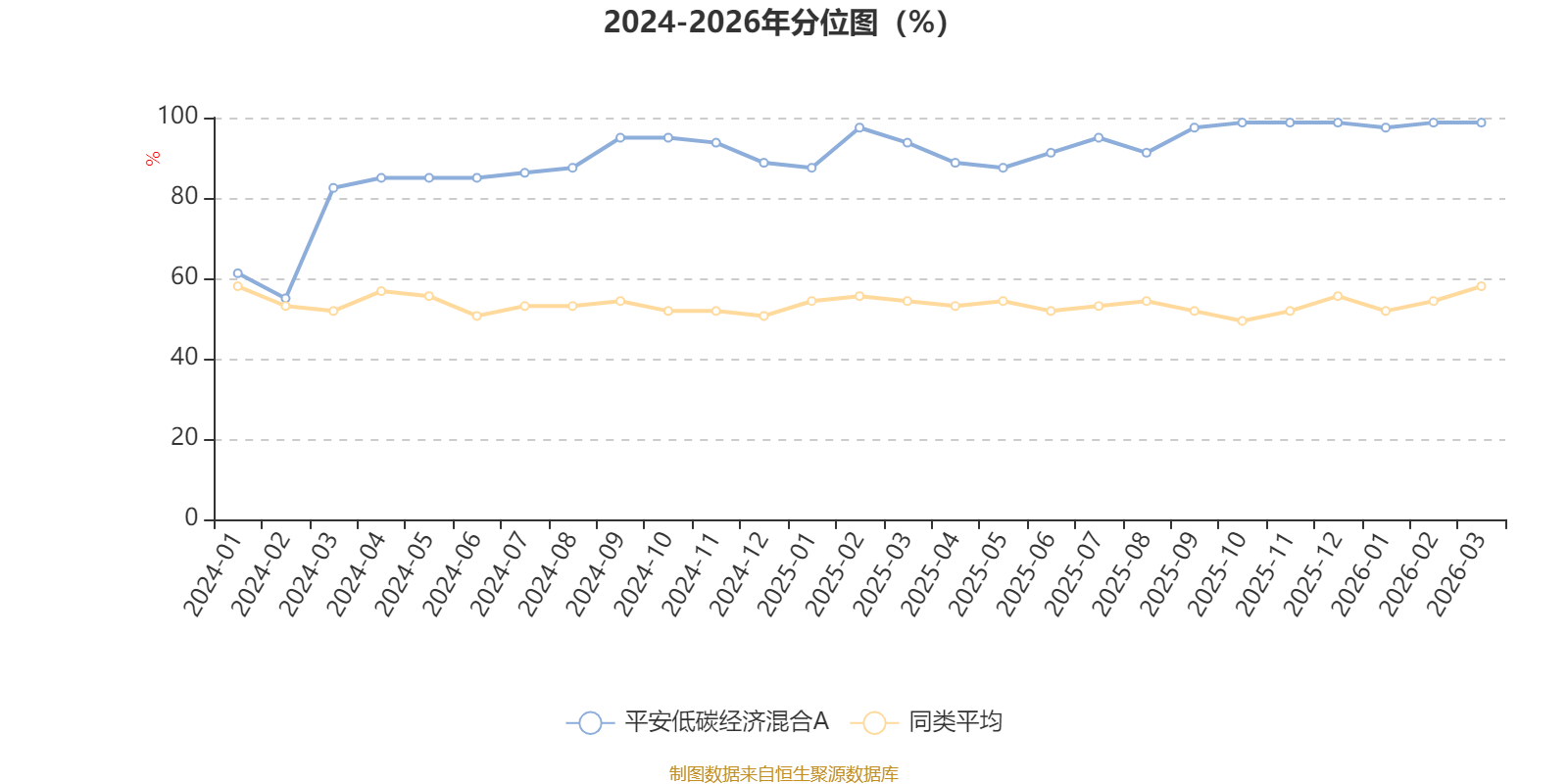 通过所选区间该基金净值增长率分位图,可以观察该基金与同类基金业绩比较情况。图为坐标原点到区间内某时点的净值增长率在同类基金中的分位数。