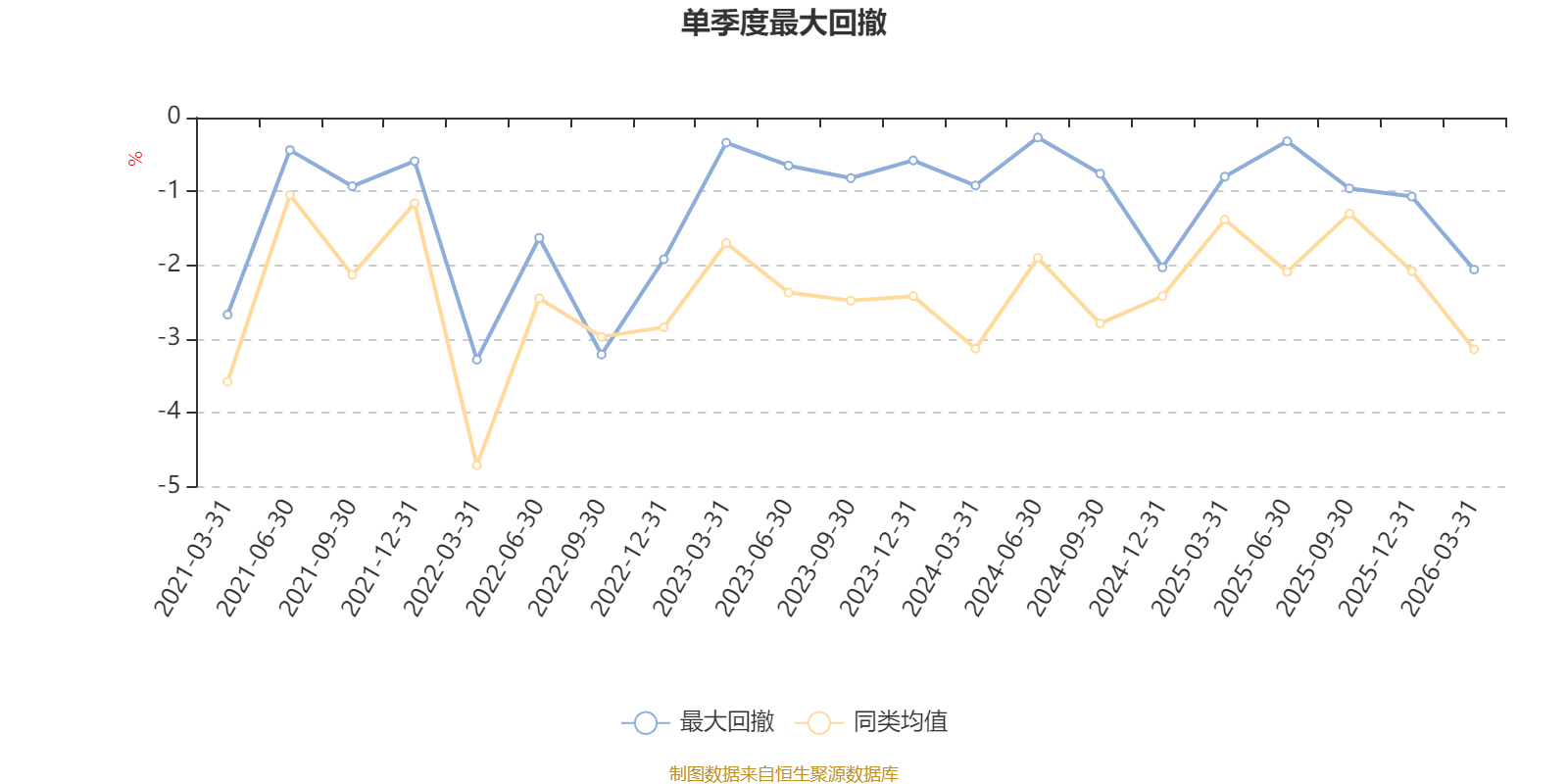 截至4月20日,基金近三年最大回撤为2.06%,同类可比基金排名17/535。单季度最大回撤出现在2022年一季度,为3.28%。