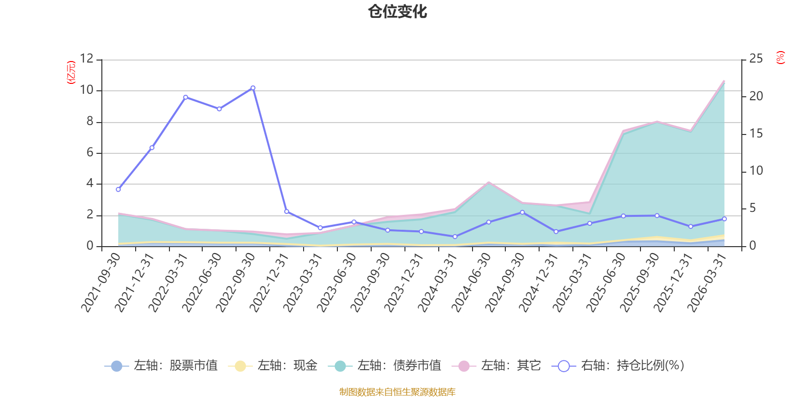 据定期报告数据统计,近三年平均股票仓位为3.01%,同类平均为19.03%。2022年三季度末基金达到21.21%的最高仓位,2024年一季度末最低,为1.31%。